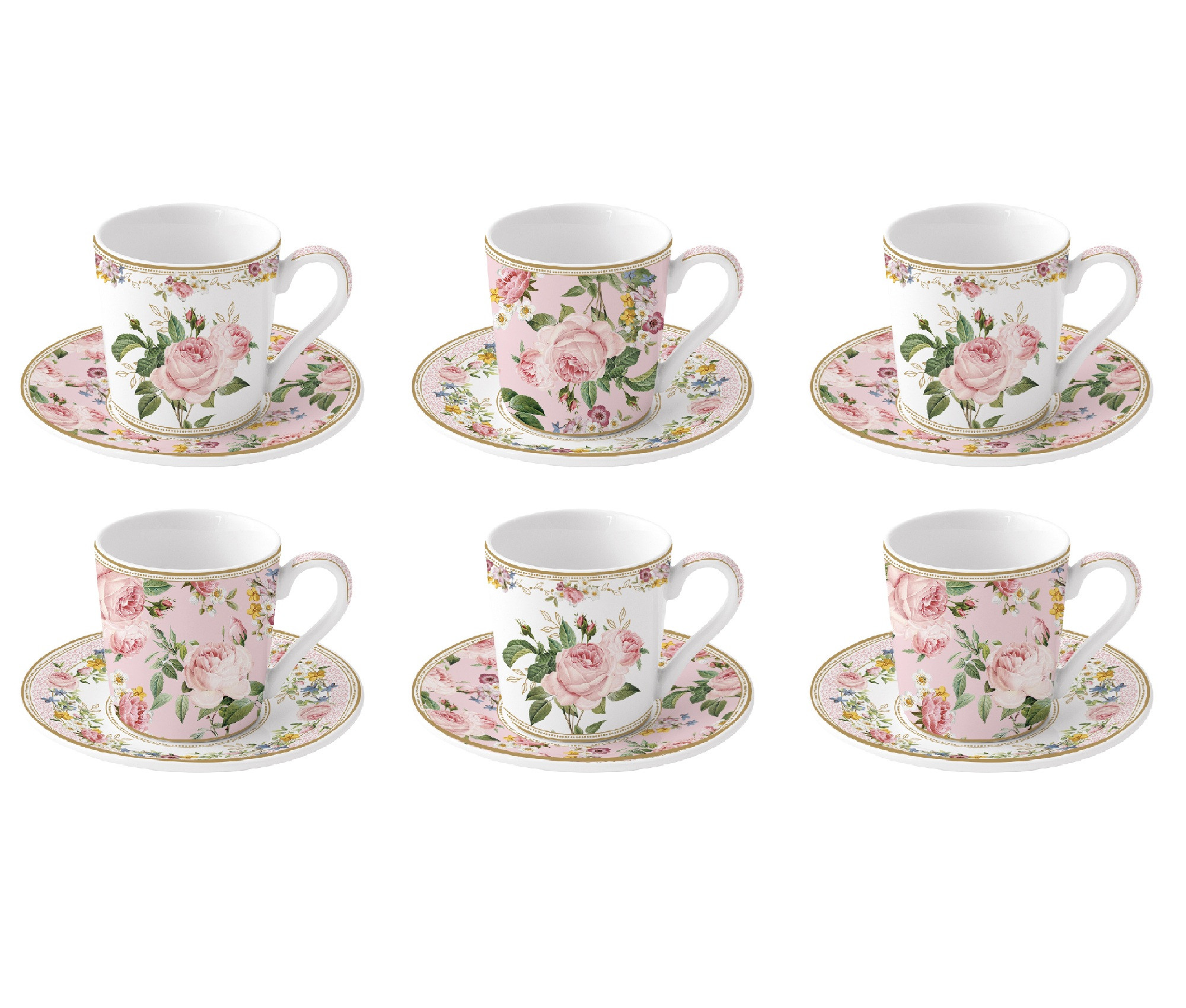 EASY LIFE portselanist espressotasside ja alustasside komplekt "Chant des Roses" 6 tk, 100 ml | 2