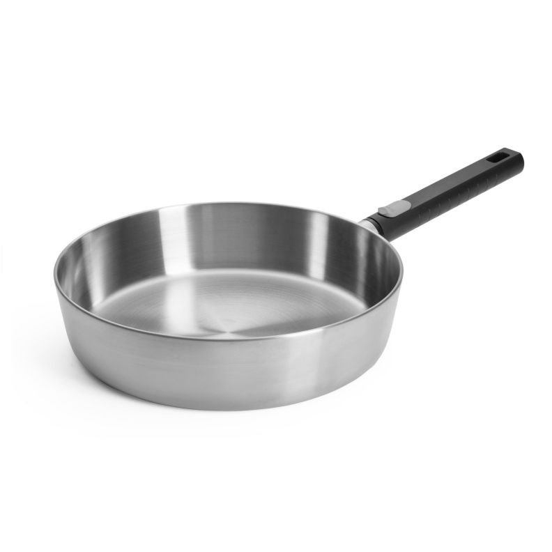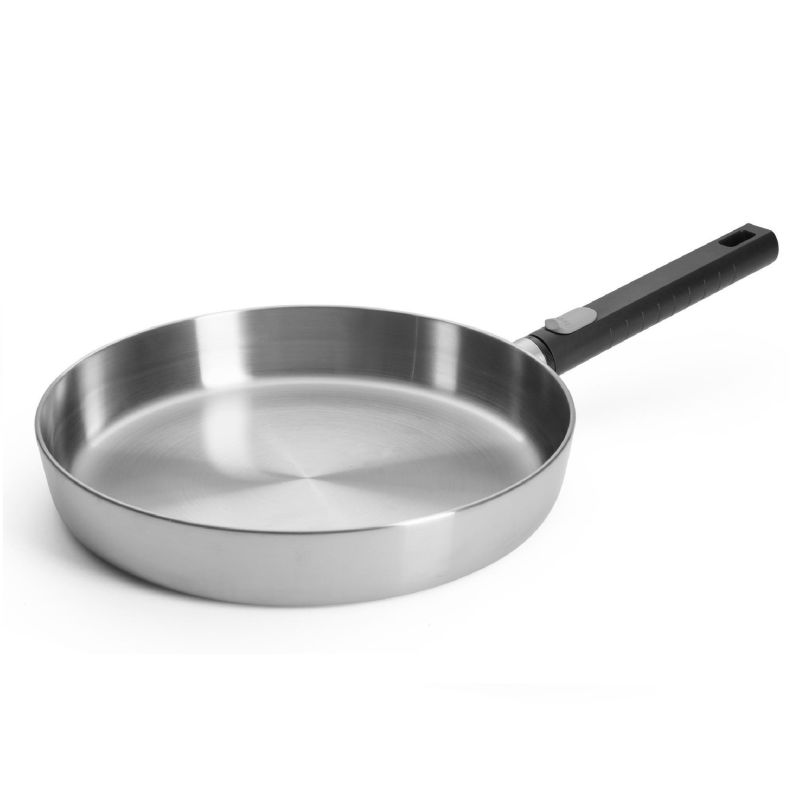 Tehases kujundatud nõgus põhi on tootja poolt kinnitatud tehnoloogiline lahendus, mis kompenseerib erinevate materjalide (alumiiniumi ja roostevaba terase) soojuspaisumist ning säilitab panni funktsionaalsuse kuumutamisel.